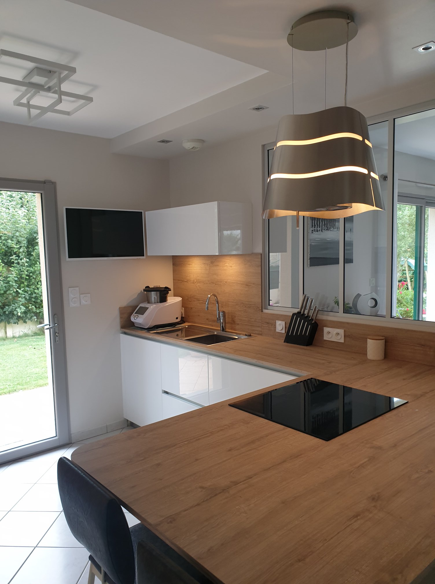 Bref nous sommes contents, notre cuisine carrée, de moins de 11 m2 ,parait beaucoup plus grande grâce à la nouvelle perspective.