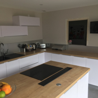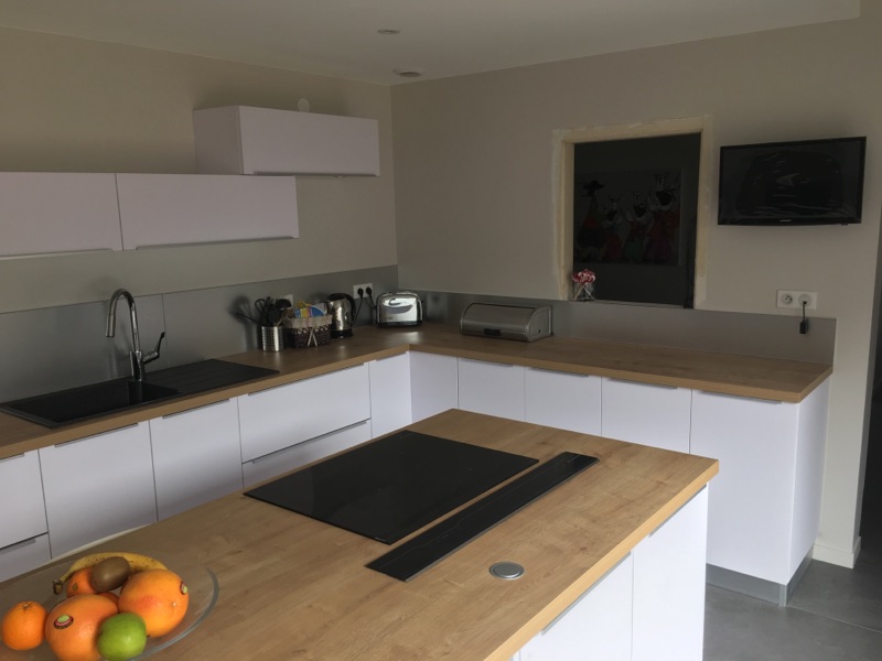 Pari réussi grâce à la très grande disponibilité et aux conseils du concepteur Michel, notre correspondant favori du 1er confinement...et à la minutie de l’installateur Ulysse Le Rebours et sa grande polyvalence : une grande cuisine avec îlot dont espace snack selon un agencement très agréable et pratique grâce au respect du triangle d’activité. Saluons enfin la bonne coordination du chantier entre les différents collaborateurs conseillés par notre cuisiniste : nous sommes très satisfaits des travaux de rénovation des murs et peintures, soigneusement effectués par l’entreprise de Françoise Vasseur.