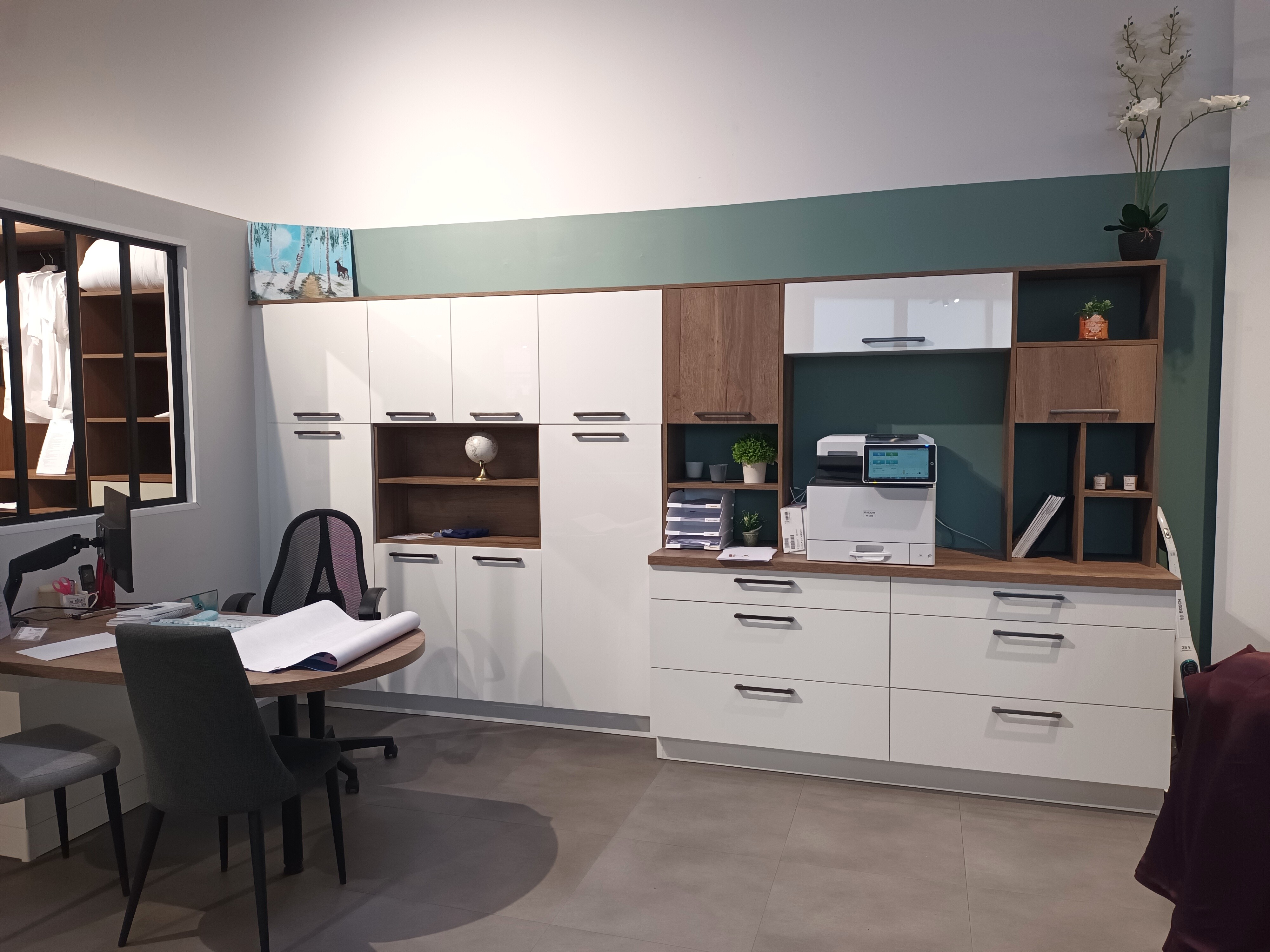 Les poseurs, de chez Leclerc Meubles, ont été efficaces et consciencieux. L'espace de travail a été laissé impeccable, les finitions des meubles posées avec soin, plomberie et découpe sans "bavures".